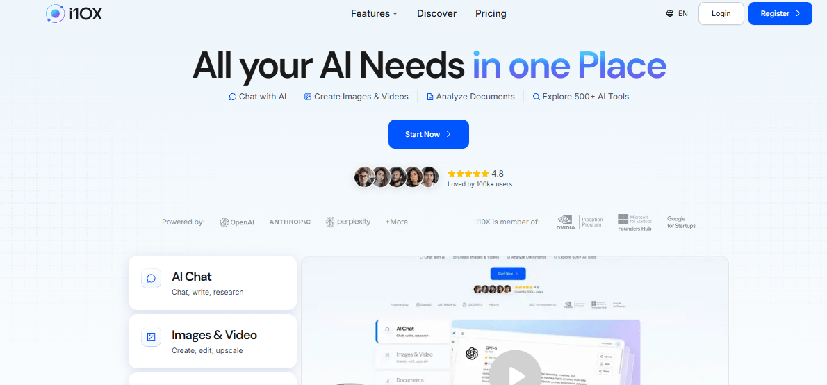 i10x combines multiple large language models into one interface, so you can use the best tools for chatting, writing, and research in one place.